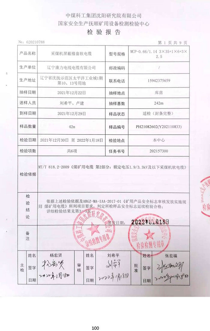 礦用產品安全標志檢驗報告